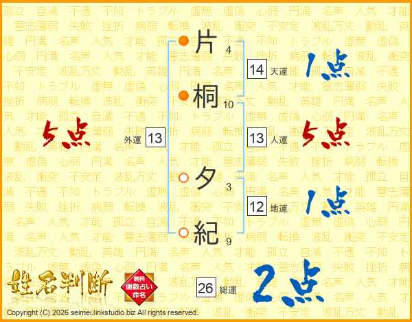 片桐夕紀さんの総運は26画の2点!