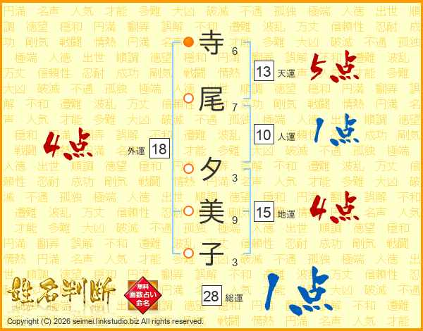 寺尾夕美子さんの外運は18画の4点!