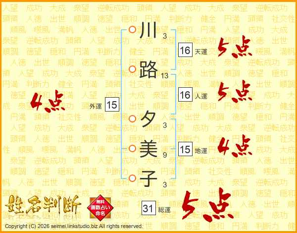 川路夕美子さんの総運は31画の5点!