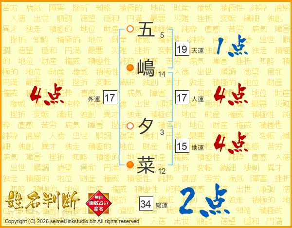 五嶋夕菜さんの外運は17画の4点!
