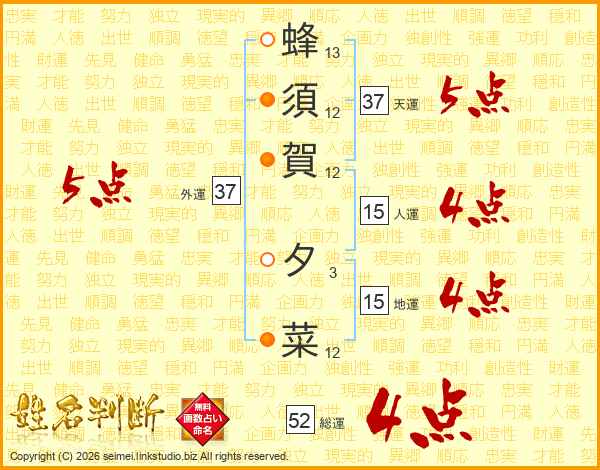 蜂須賀夕菜さんの外運は37画の5点!