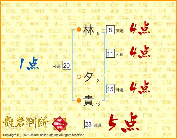 林(8画) 夕(3画)貴(12画)