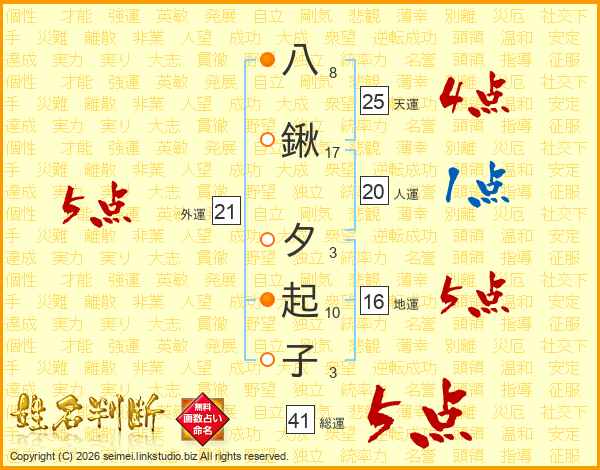 八鍬夕起子さんの総運は41画の5点!