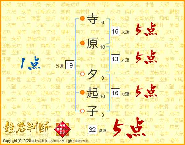 寺原夕起子さんの総運は32画の5点!
