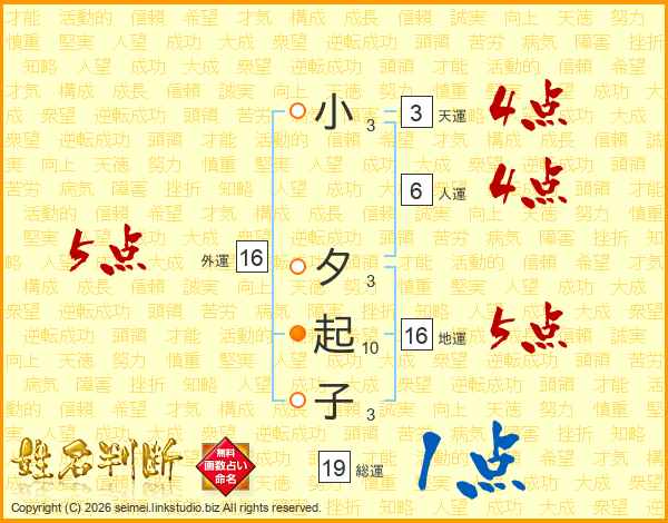 小夕起子さんの外運は16画の5点!