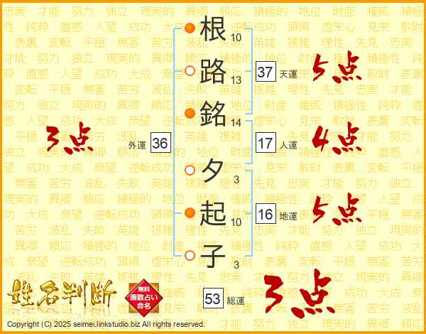 根路銘夕起子さんの総運は53画の3点!