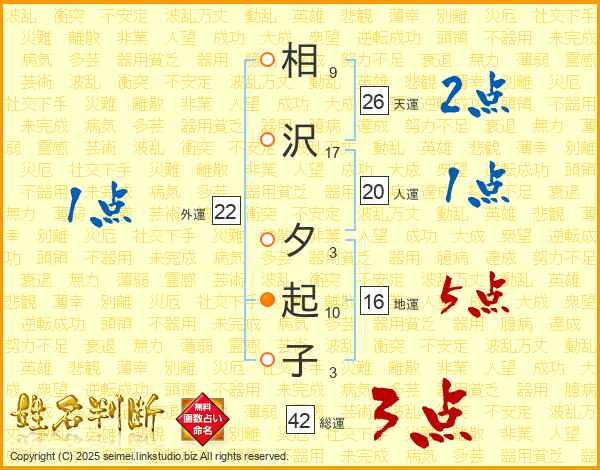 相沢夕起子さんの総運は42画の3点!