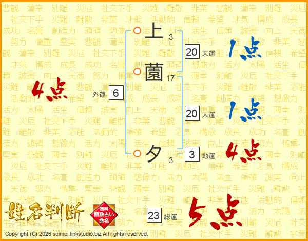 上薗夕さんの総運は23画の5点!