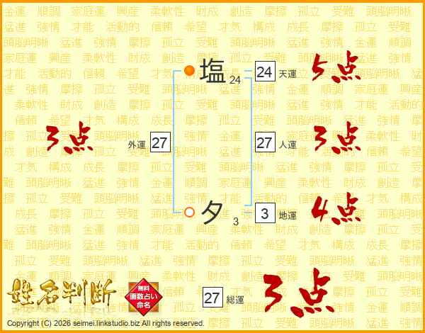 塩夕さんの総運は27画の3点!