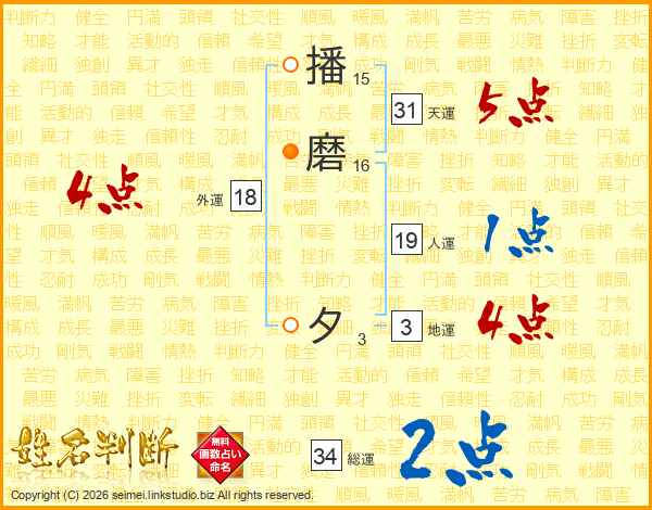 播磨夕さんの総運は34画の2点!