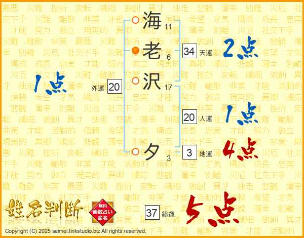 海老沢夕さんの総運は37画の5点!