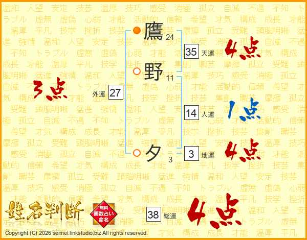 鷹野夕さんの総運は38画の4点!