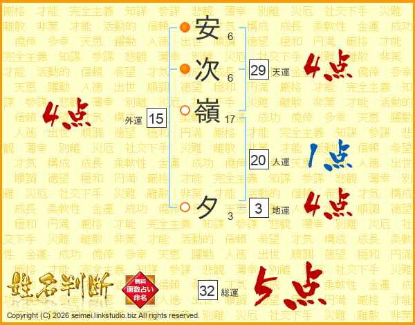 安(6画)次(6画)嶺(17画)  夕(3画)