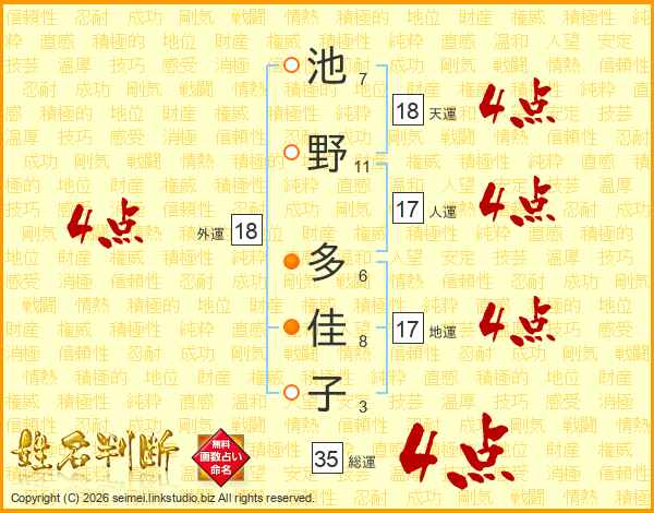 池野多佳子さんの外運は18画の4点!