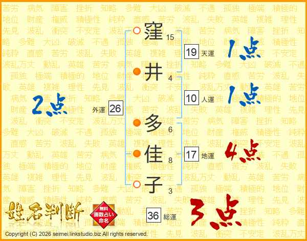 窪井多佳子さんの地運は17画の4点!