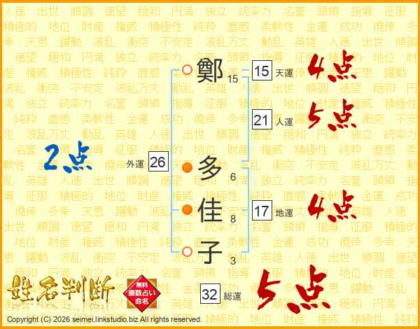 鄭多佳子さんの総運は32画の5点!