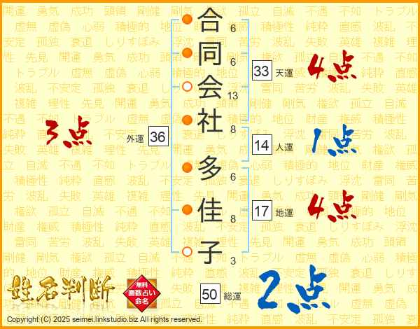 合同会社多佳子さんの天運は33画の4点!