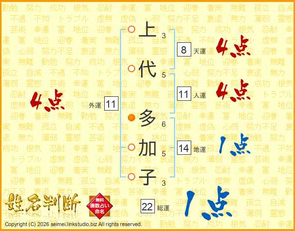 上代多加子さんの人運は11画の4点!