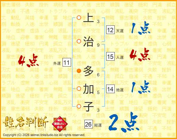 上(3画)治(9画) 多(6画)加(5画)子(3画)