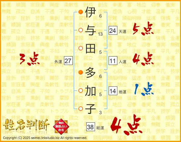 伊与田多加子さんの総運は38画の4点!