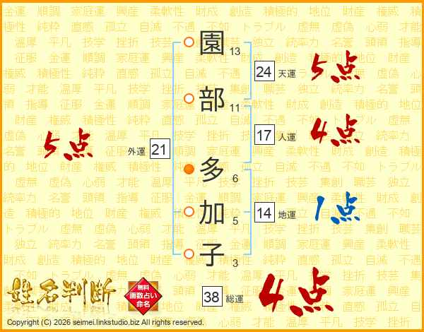園部多加子さんの総運は38画の4点!