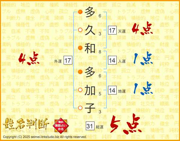 多(6画)久(3画)和(8画) 多(6画)加(5画)子(3画)