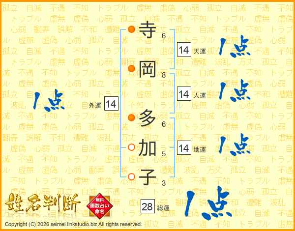 寺岡多加子さんの天運は14画の1点!