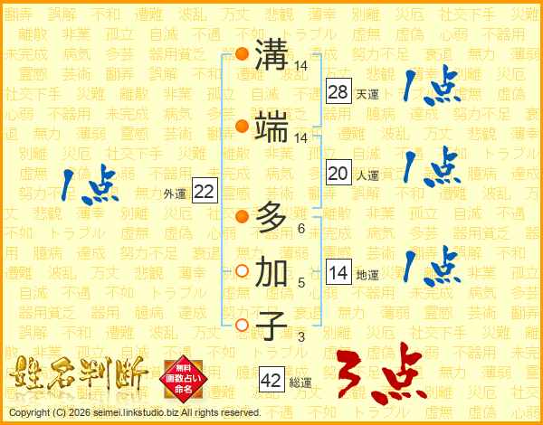 溝端多加子さんの地運は14画の1点!