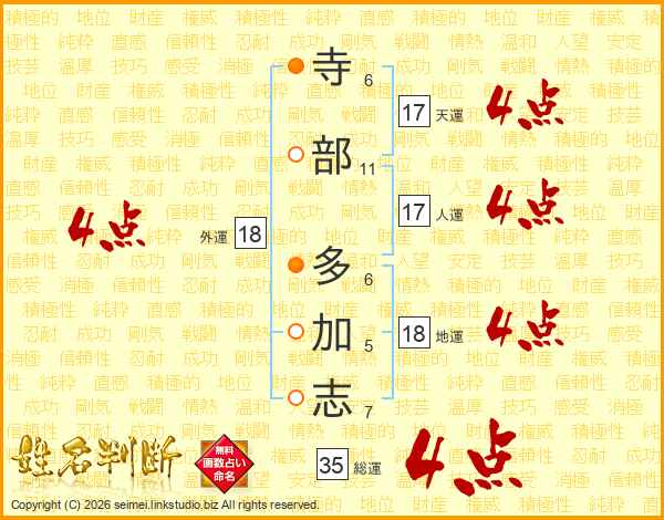 寺(6画)部(11画) 多(6画)加(5画)志(7画)