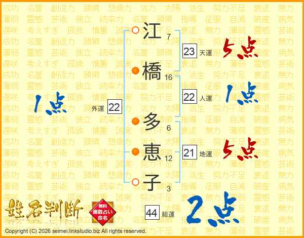 江橋多恵子さんの人運は22画の1点!