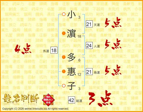 小濵多惠子さんの天運は21画の5点!