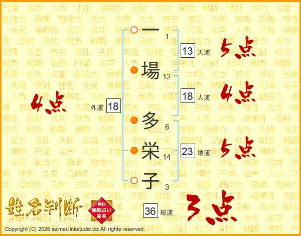 一場多栄子さんの天運は13画の5点!