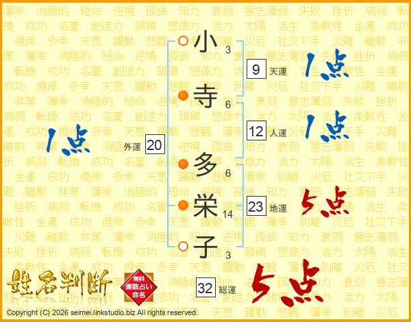 小(3画)寺(6画) 多(6画)栄(14画)子(3画)
