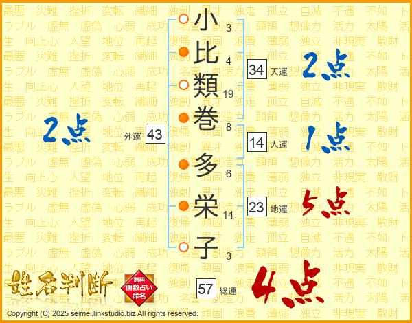 小比類巻多栄子さんの総運は57画の4点!
