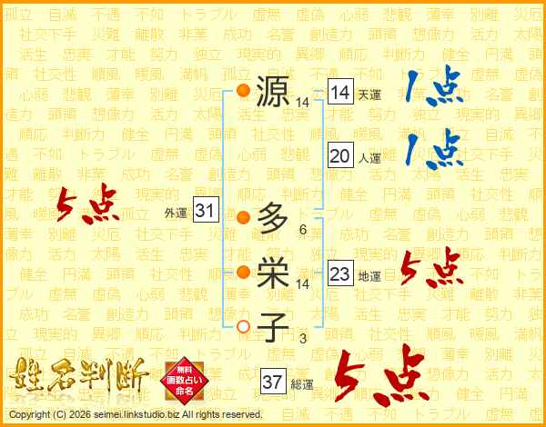 源多栄子さんの総運は37画の5点!
