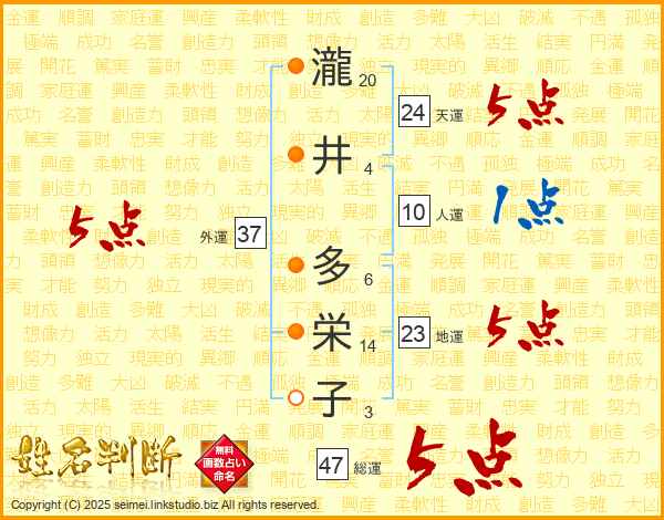 瀧(20画)井(4画) 多(6画)栄(14画)子(3画)