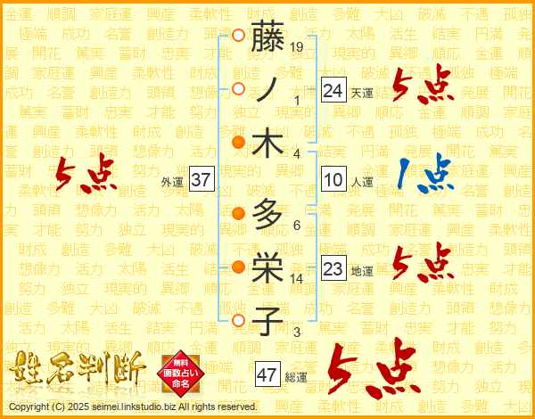藤ノ木多栄子さんの総運は47画の5点!