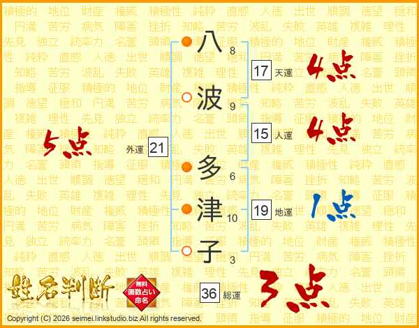八波多津子さんの天運は17画の4点!