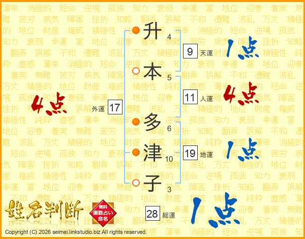 升本多津子さんの総運は28画の1点!