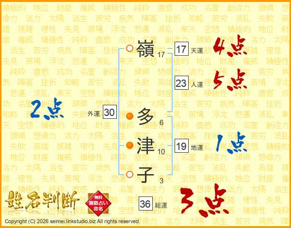 嶺多津子さんの天運は17画の4点!