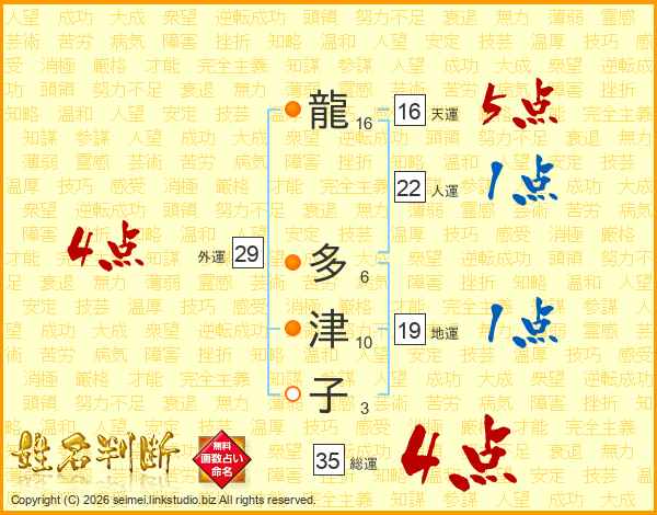 龍多津子さんの総運は35画の4点!