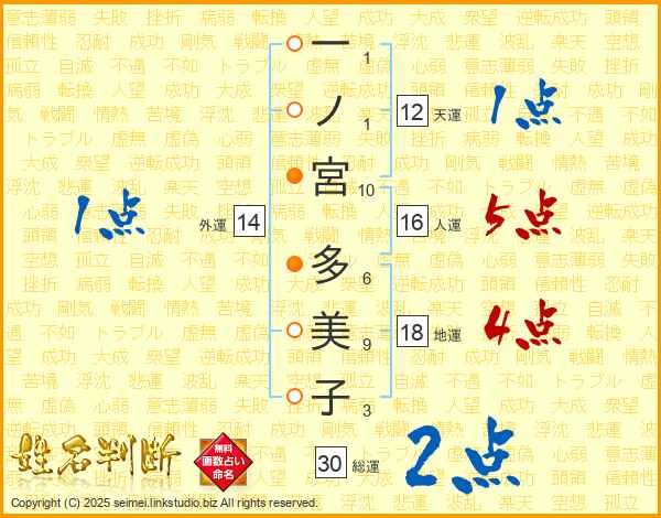 一ノ宮多美子さんの総運は30画の2点!