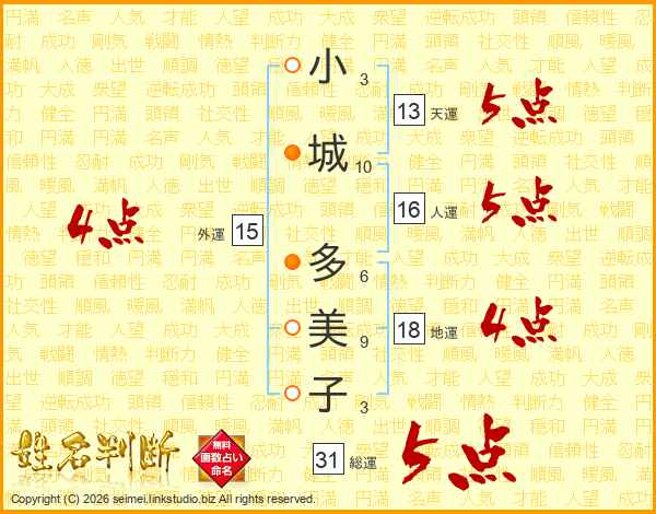 小城多美子さんの総運は31画の5点!