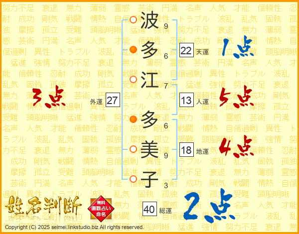 波多江多美子さんの総運は40画の2点!