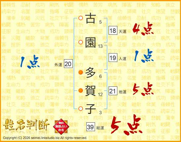 古園多賀子さんの総運は39画の5点!