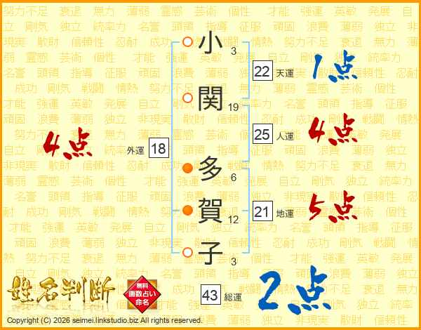小関多賀子さんの総運は43画の2点!