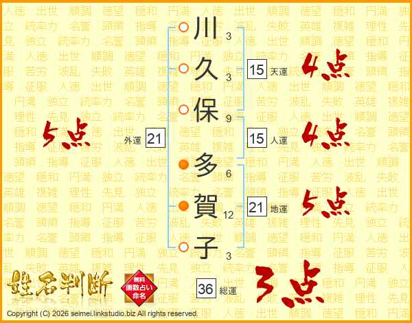 川久保多賀子さんの外運は21画の5点!