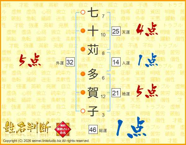七十苅多賀子さんの総運は46画の1点!