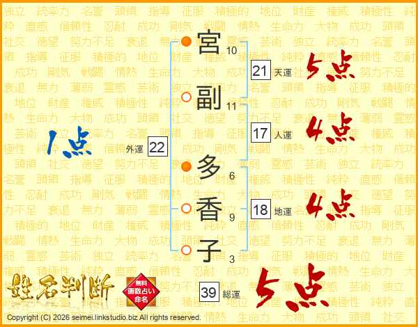 宮副多香子さんの天運は21画の5点!
