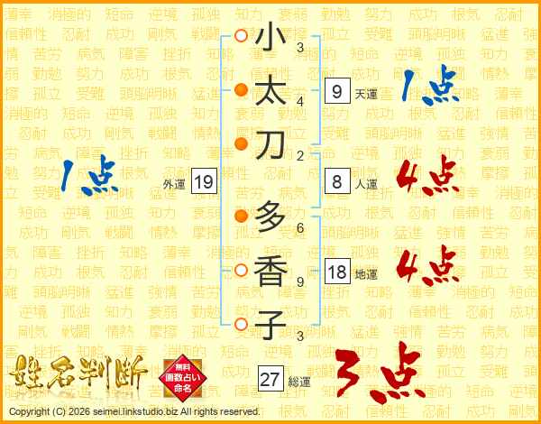小太刀多香子さんの総運は27画の3点!